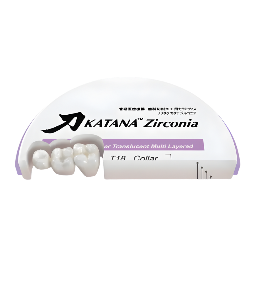 Với KATANA Zirconia STML, ánh sáng được truyền vào vùng răng cửa và chặn lại ở vùng cổ. Bạn có thể linh hoạt tạo ra các phục hình toàn diện đẹp mắt, bất kể màu trụ. Đây là sản phẩm tiên phong của zirconia với độ trong mờ/tự nhiên và độ chuyển màu. Sử dụng KATANA Zirconia STML cho các phục hình toàn diện tiếp theo của bạn.
