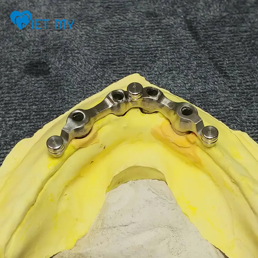 - Implant được nối với nhau bằng thanh kim loại (bar).